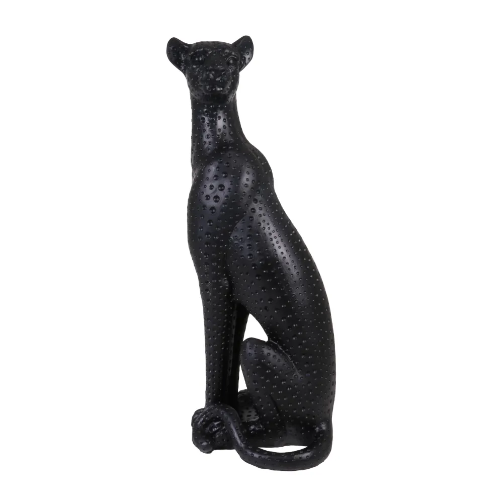 maxibazar Statuette Leopard Noire Assis H.38Cm- Statues
