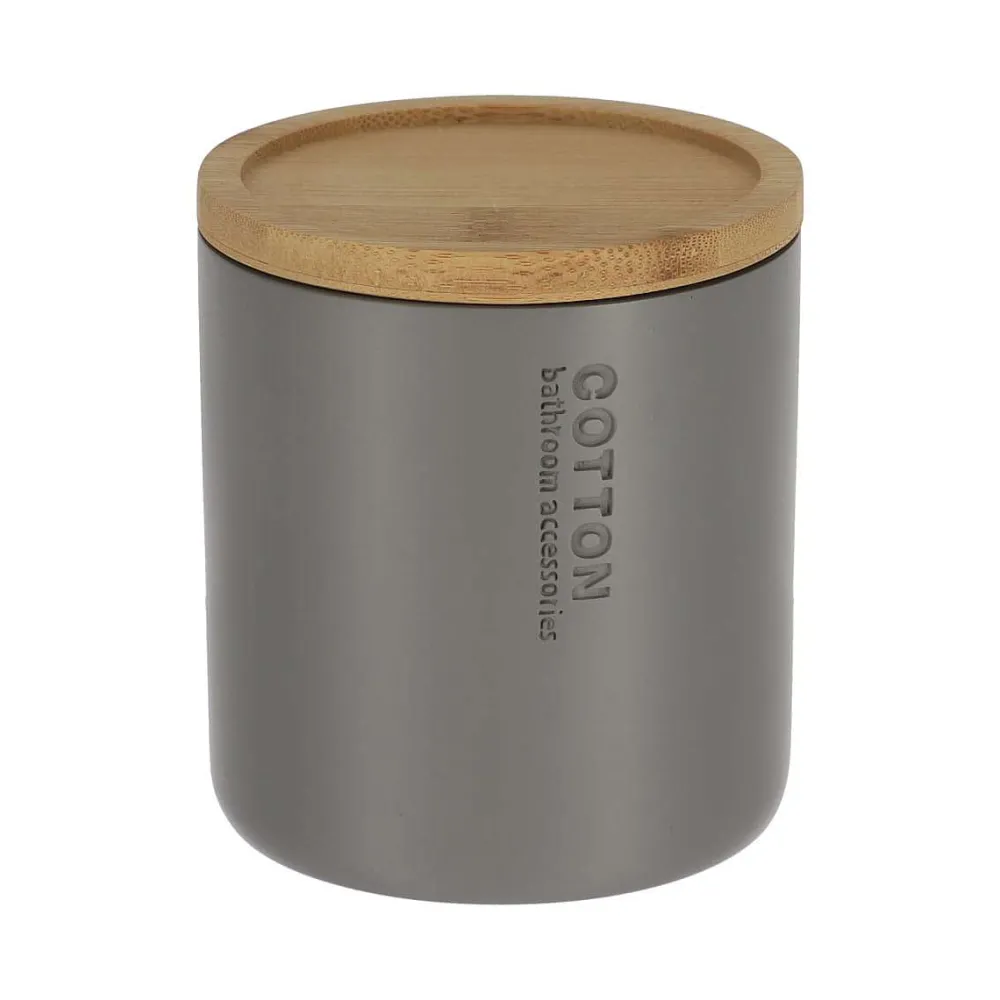 Accessoires De Salle De Bain|* Boîte A Coton Polyresine Couvercle Bambou Gris Bambou