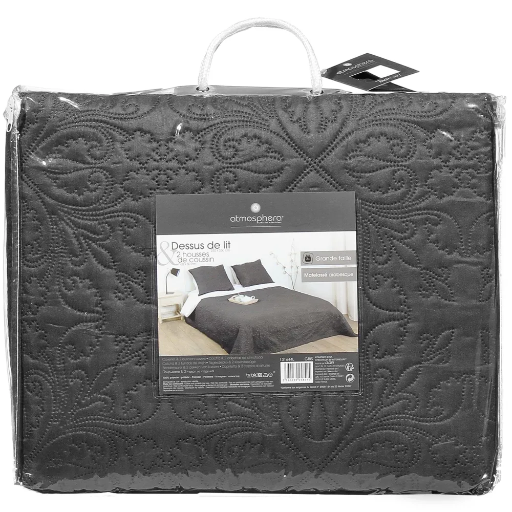 Atmosphera Dessus De Lit Arabesque Avec 2 Taies Gris Fonce 240X260Cm- Couvre-Lits, Boutis Et Edredons