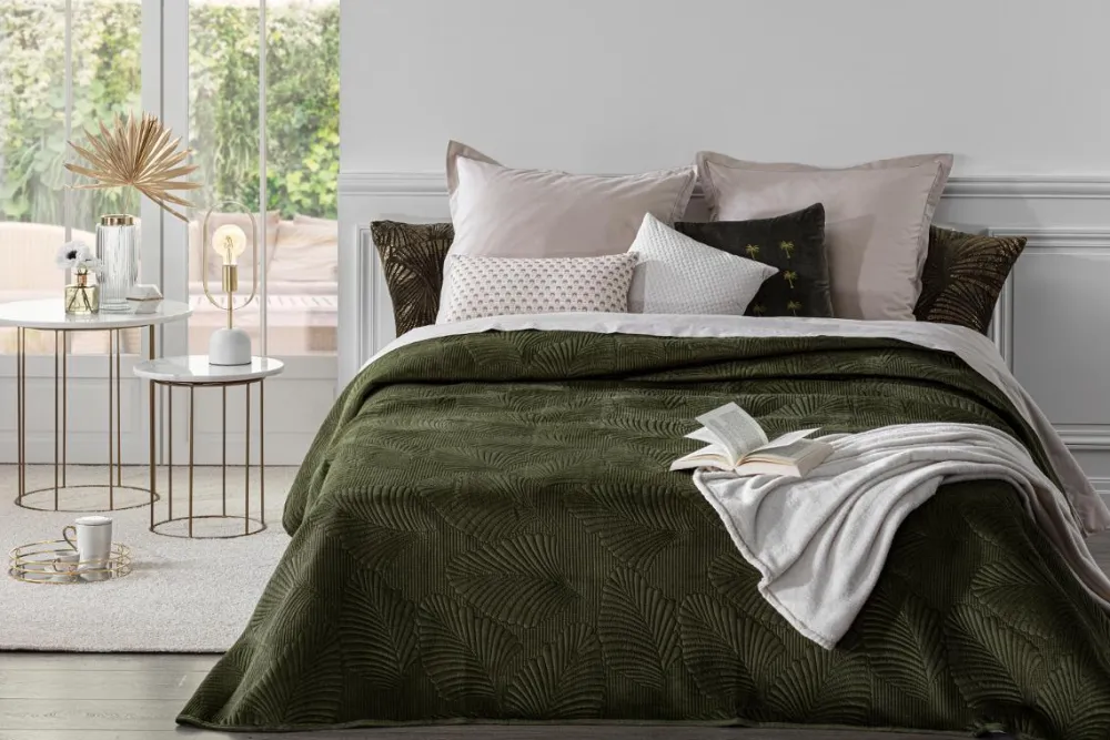 Atmosphera Dessus Lit Velours Feuille Kaki 240X260Cm- Couvre-Lits, Boutis Et Edredons