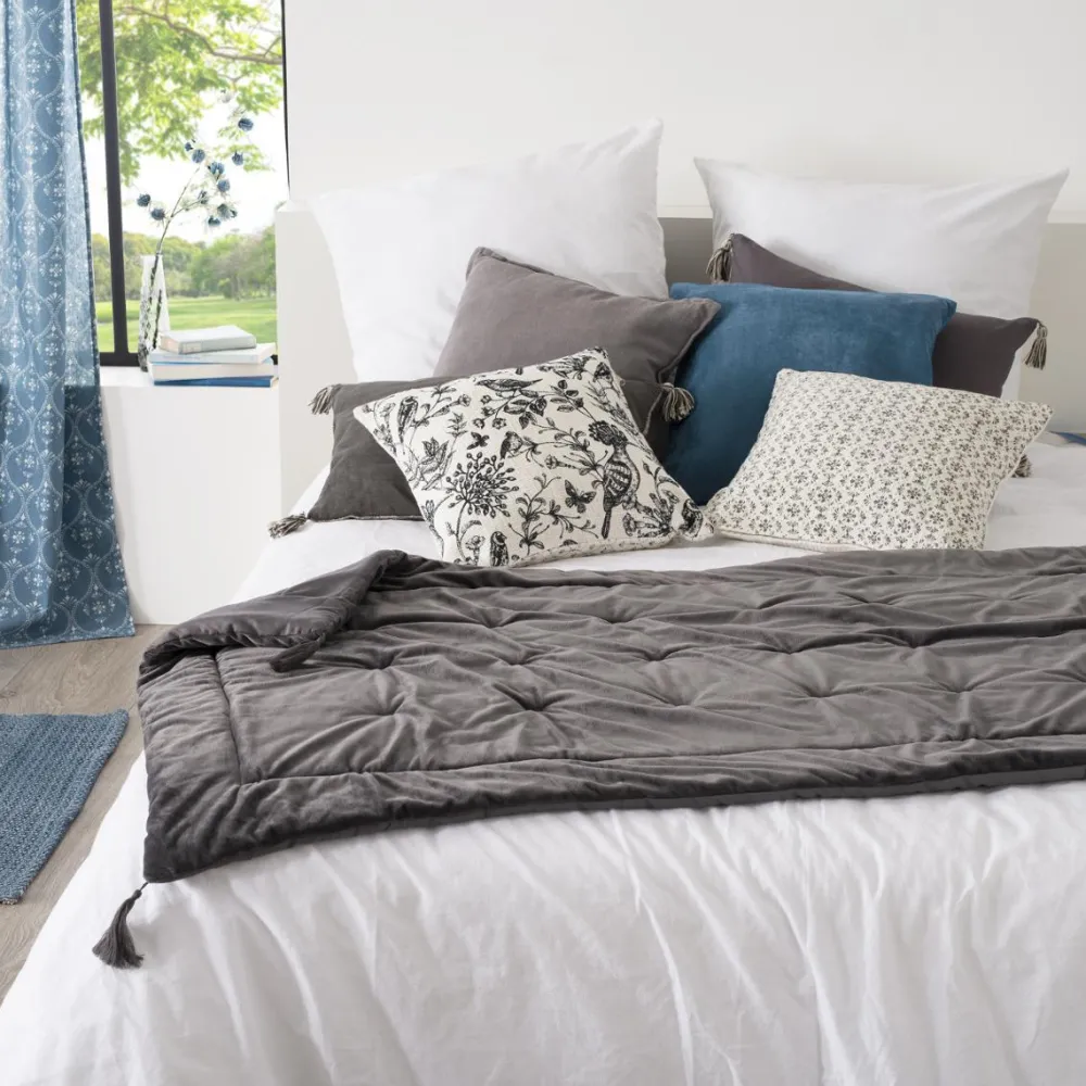 Atmosphera Edredon Sonia En Velours Gris 80X180Cm- Couvre-Lits, Boutis Et Edredons
