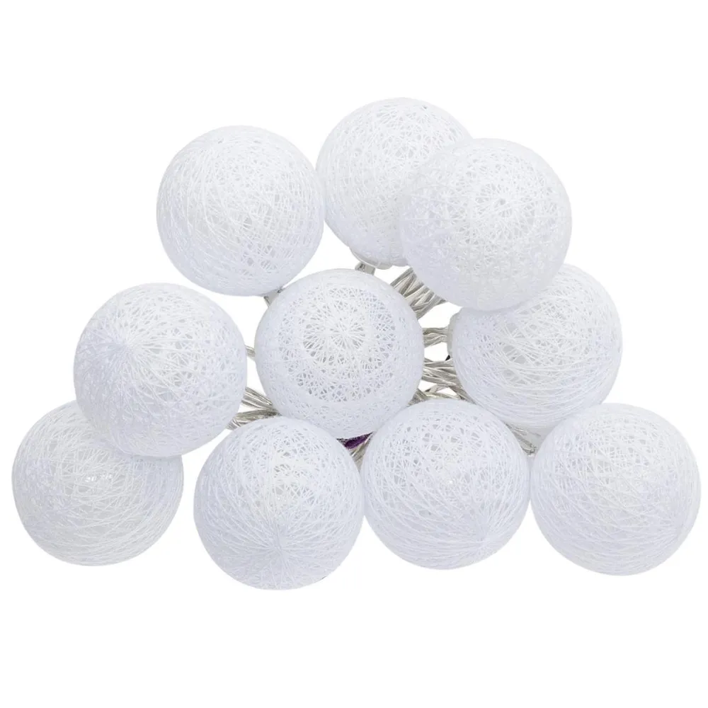 Atmosphera Guirlande Led Pile 10 Boules Blanc D.6Cm- Guirlandes Lumineuses