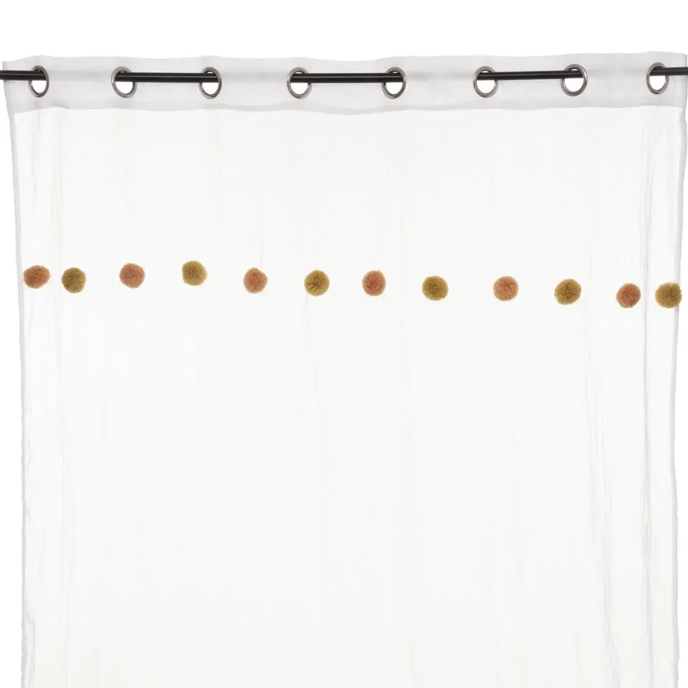 Atmosphera Voilage Pompons Rose Ocre- Voilage Et Rideau Enfant