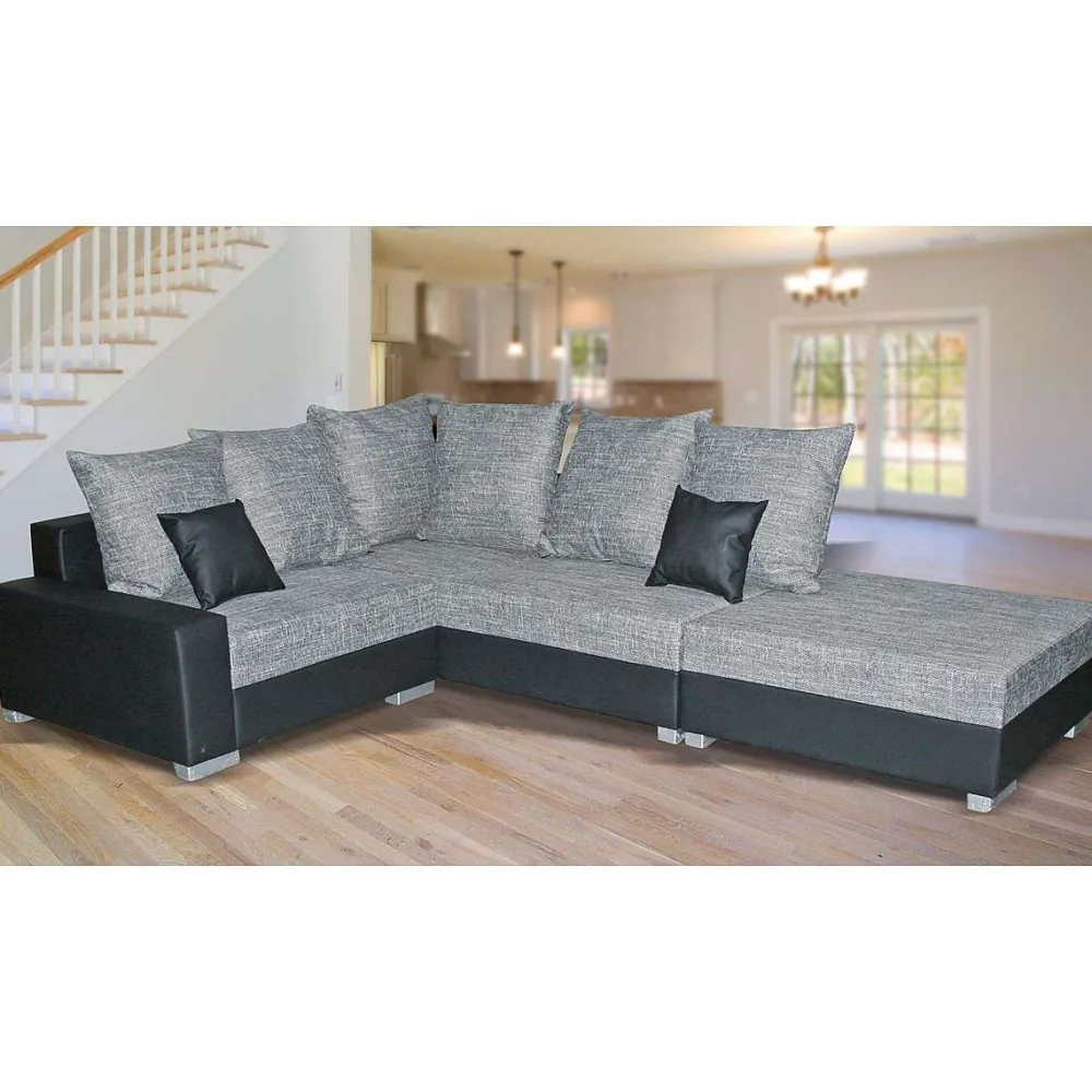 * Canapés D’Angle>Sonia Ad Tissu Gris Lawa 5 Pvc Noir