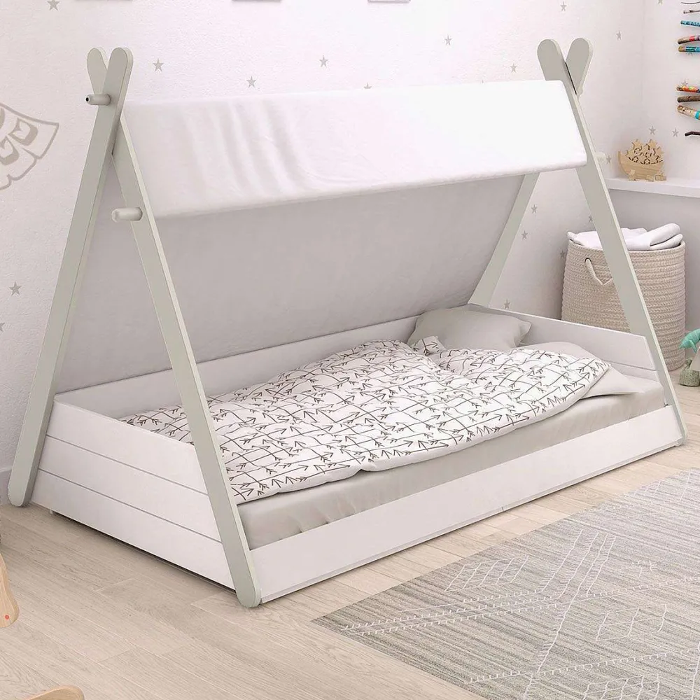 Dimensions Couchage : 90 X 200 Cm / Rideau Coloris Ecru 80% Polyester 20% Coton / Sommier A Lattes Multiplis Bombees Inclus / Peinture A Base Aqueuse (Norme De Securite) / Structure Mdf Laque / Conforme Aux Normes De Securite Nf En 17-25