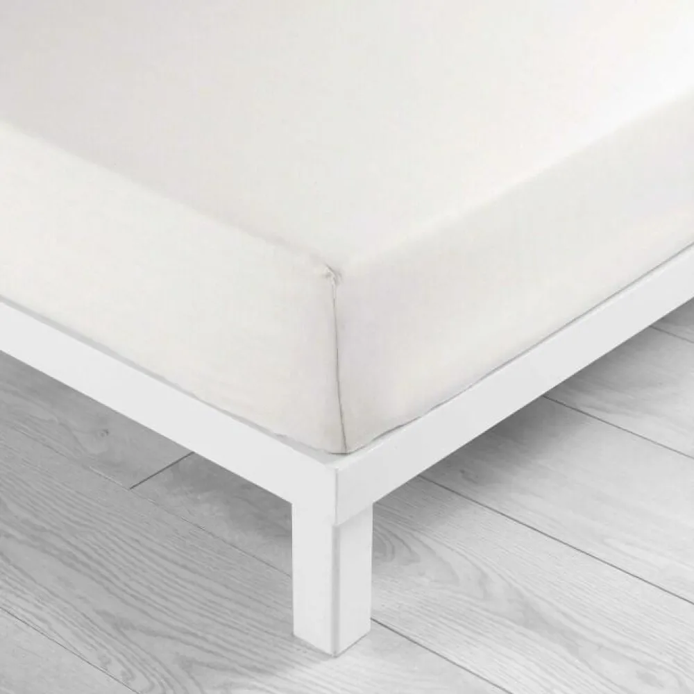 maxibazar Drap Housse 140X190Cm Uni 57 Fils Lina Blanc- Draps Housse