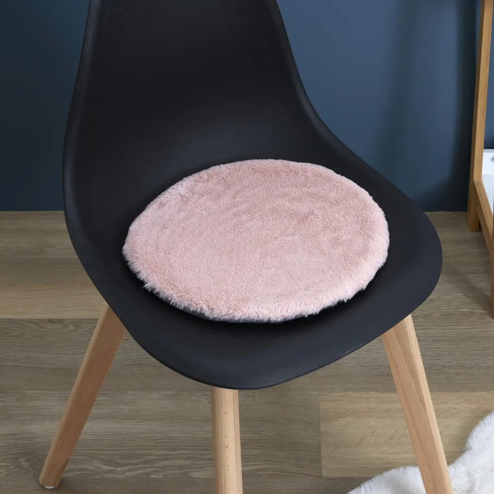 maxibazar Galette Chaise Imitation Fourrure Fin Rose 34Cm- Galettes De Chaise