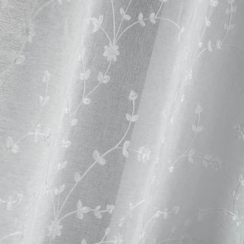 maxibazar Paire Droite Passants 2X60X120Cm Petite Fleur Blanc Blanc- Petits Vitrages