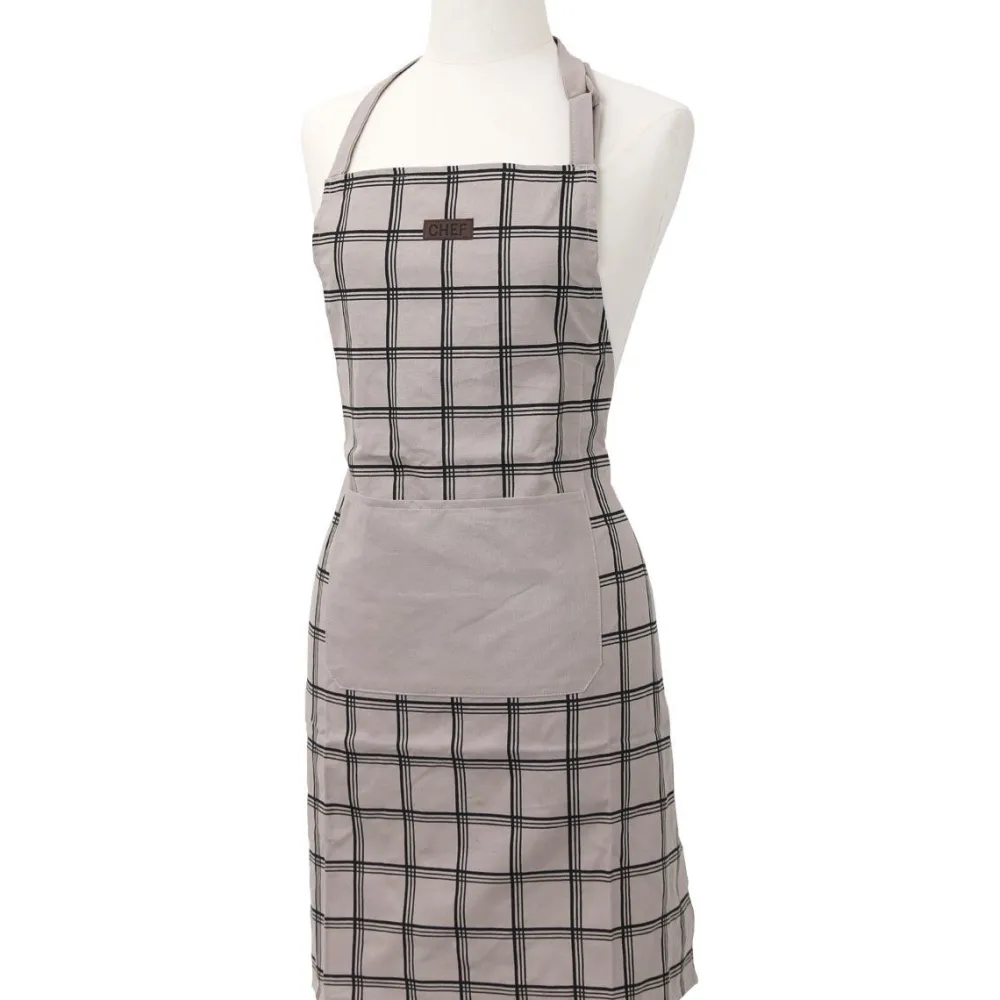 maxibazar Tablier De Cuisine Chef Carreaux 65X80Cm Taupe- Tabliers Et Accessoires