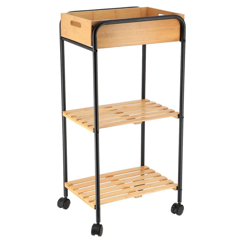 * Meubles Salle De Bain>Desserte Metal Sur Roulettes 1 Niche 2 Étagères Bambou Noir