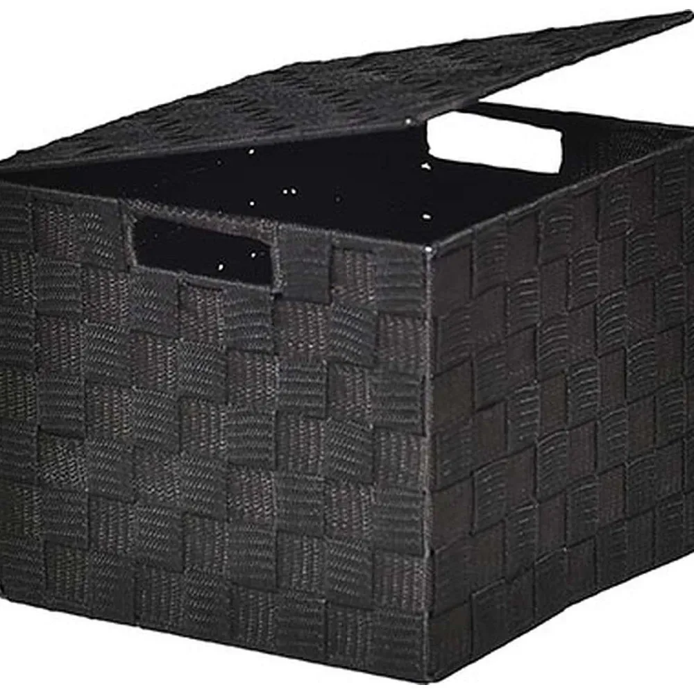 Rangements Deco|* Panier Carre Polyester Avec Couvercle Noir Taille M